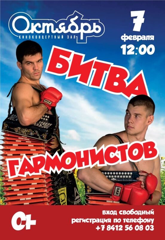 7 февраля 12:00 – «Битва гармонистов». Вход свободный. Количество мест ограничено. Билеты можно забронировать по номеру: 56-08-03.